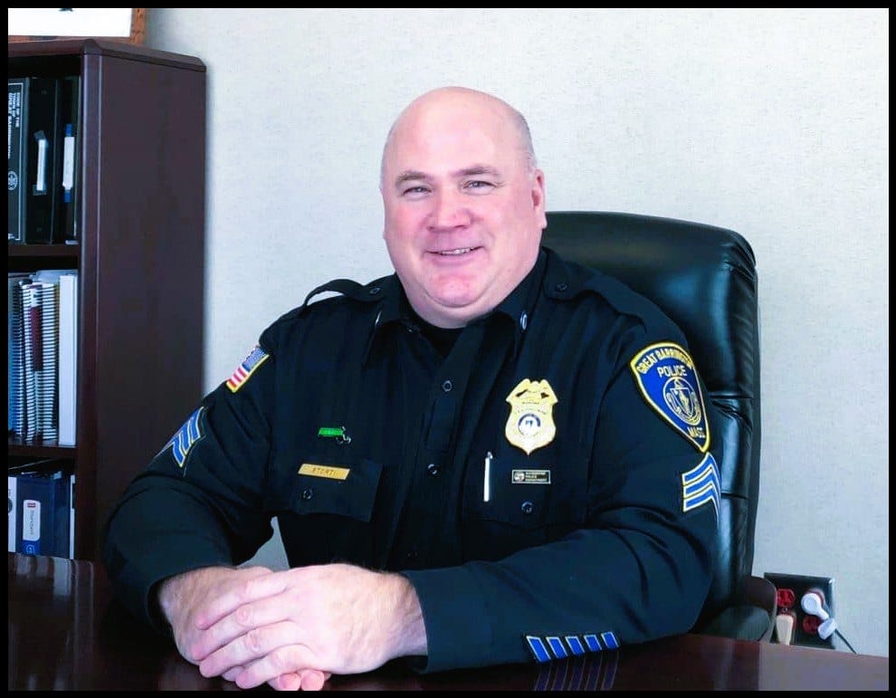 Born and raised in Housatonic, Storti, 56, lives with his family in Great Barrington. He attended local public schools in the Berkshire Hills district and was a stand-out forward on the Monument Mountain High School boys’ soccer team. Storti’s four children range in age from twelve to thirty; they also attended local schools. Paige Storti, his twenty-six-year-old daughter, is a filmmaker whose documentary short, “The Backpack,” profiles her father and explores the emotional scars left by decades of police work in a small town. “I pretty much can’t go anywhere in the community without seeing something that reminds me of a tragic incident,” he says in the film’s trailer.