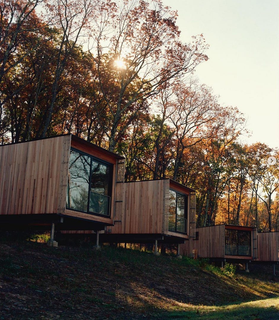 The as-yet-unnamed venture is strikingly similar to Piaule Catskills—not surprisingly, given that Garrison Architects designed the cabins at both. That popular year-round resort, which opened in 2021, offers spare, “luxury modernist cabins” that are, according to its website, “nestled into the forest or open to the sky, enveloped by the healing power of the earth.”