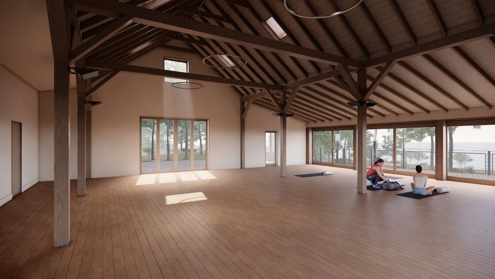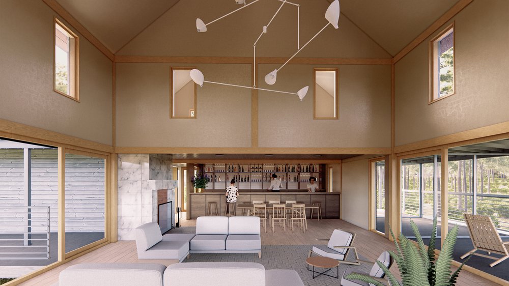 The renovated Rec Hall barn—also labeled “Spa” on some documents filed with the town—will be used by hotel guests for various activities, as it has over the long history of the former campground: “The building will serve as a multi-function space for the hotel, suitable for yoga classes, rainy day activities and catered events,” the project managers wrote.