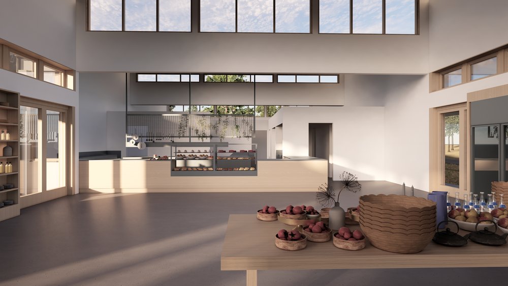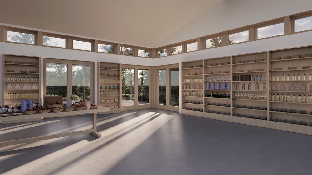 Also described is “The Market,” shown on plans as a new building and retail business located immediately off Prospect Lake Road that will serve as “the public facing signature for the Prospect Lake Landscape Hotel in the woods behind it … Its goods serve both the local community and hotel guests, who can reach it via woodland trails from the resort without crossing a road,” the description says.