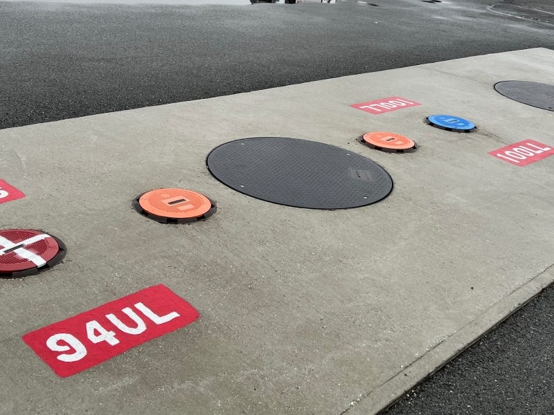 From December 1987 until January 2018, aviation fuel at the airport was held inside a steel, single-walled, 20,000-gallon UST. During that period, there was also a separate 4,000-gallon UST for automobile gasoline. Today the airport stores two flavors of aviation fuel, 100-octane leaded and 94-octane unleaded, in a two-compartment, fiberglass, double-walled, 20,000-gallon tank.