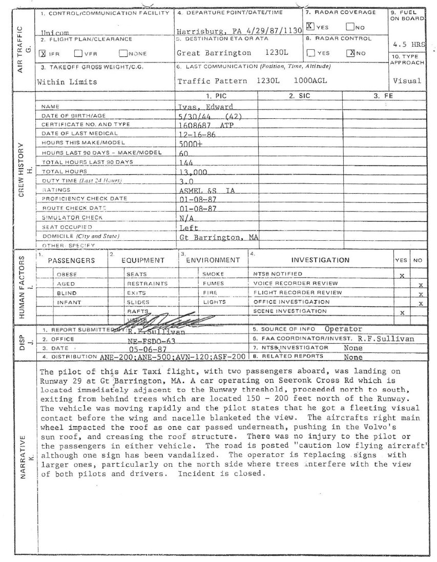 Meanwhile, a host of residents, including 138 who signed a petition calling for unspecified safety measures, argued that roads are meant for drivers, and it’s not their responsibility to be alert to sudden dangers from above. After all, pilots have standard glide-slope approaches and shouldn’t be at car level before reaching the runway. “The airplane-automobile accident on April 29, 1987, is shocking and points out the danger to motorists and pilots of Seekonk Crossroad and Runway 29,” the petition sent to the Selectboard began. “I would like to see proper measures taken to make this area safe.” Parents and town officials also expressed concern about buses traveling to the nearby private school and the safety of others, especially children, who passed the road-runway intersection in cars every day.