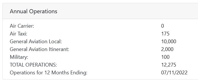 And despite an acknowledged increase in operations at the airport in recent years from pandemic-era interest and a growing flight school, last summer, BAE provided the FAA with perhaps the lowest estimate in its history: that total of 12,275 annual operations, broken down as 10,000 local, 2,000 itinerant, 175 air taxi, and 100 military. That would average less than three takeoffs or landings an hour per 12-hour day, something even a cursory review of activity at the airport would suggest is an undercount.