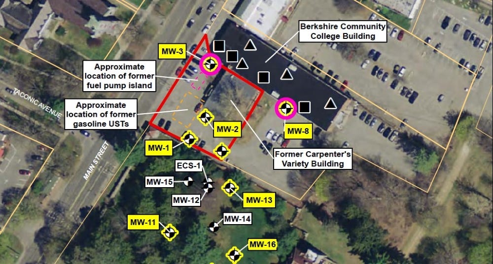 That work was overseen by the Massachusetts Department of Environmental Protection (MassDEP), which funded monitoring and remediation efforts until 2012. MassDEP also attached liens to the property, owned by the former BCC building owner Isodore Goodman, in an attempt to recoup money spent by the state. (The town of Great Barrington is seeking to have the liens removed so it can take ownership of the property. It hopes to secure funds for additional remediation and then sell the property. Rasch told me he’s interested.)