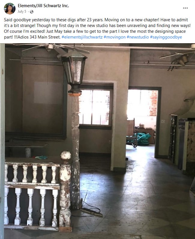 “Overall, I’m lucky,” Schwartz told me last week, describing the challenge of navigating a move in mid-pandemic after 23 years in the same space. “I think in the end I did okay, although I only have one-third of the space that I did.” She purchased a new studio on South Main Street where Leisure Pools used to be—ironic, perhaps, in that Leisure Pools was, for a time, located in a storefront unit at 343 Main Street.
